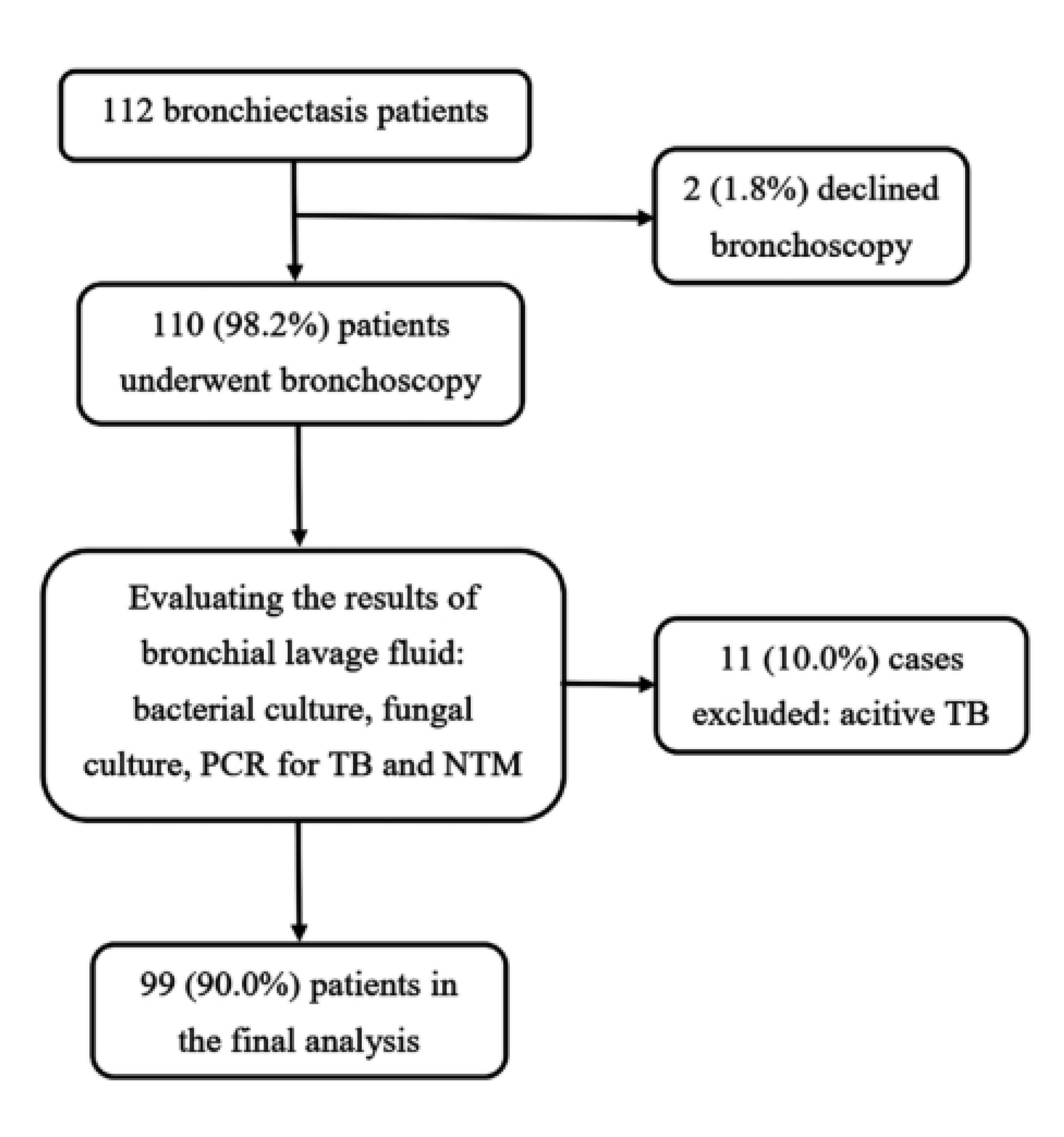 Nguyen-Ho L, Tran-Le Q, Trinh H, et al. Potential Microorganisms from Bronchial Lavage Fluid in Bronchiectasis Patients: Bacteria, Nontuberculous Mycobacteria, and Fungi. Open Respir Med J 2025; 19e18743064392945